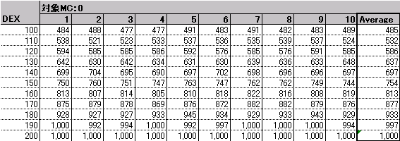 色々なスキルを駆使して頭使いながらソロできるって飽きなくていい。 でもね、一つだけ不満があったんだよ・・・。 どれだけ善悪が高くなろうと、どんだけ最大値が増えようとも 決して減ることのない青紫色のバー・・・。 魔に分けてあげたいぐらいだったのに。。。、 先日、ついに出たんですよ、待望の天上スキル! その名も・・・ ポイズンシュート☆ 実際に☆を所持していると威力が上がるという。 これ、ほかの毒全てと重なるという恐ろしいスキルの上、毒防御が通用しないという鬼畜性能。 こりゃすげーと思ったけど、狩場で実際使うと当たらない当たらない。 ということで、少し調べてみた。 DEXを100から200の間で変化させたときのダメージ推移。 DEXの値に対する比例計算のようだが、どうやらDEX200-ダメージ1,000で上限のようだ。 DEX賊にとってもかなりムダが発生することになる。 じゃあ当たらない当たらないとお嘆きの方も多い命中率のWISとの関係 どーよ、こんな盗賊見たことないでしょう! でも、これだけWISがあると魔法なんかまるで当たらない。 対人する人は盗賊相手にしなければそこそこ面白い組み合わせではないでしょうか・・・。 ぼくは対人しないから知らないけどさ!結局ラストマインドとか喰らったらイノストで吹き飛ぶんだけどさ! で、本題からそれたけどWISを3から70まで変化させた時の命中率推移 1回の試行(10回スキル使用)のうち何回ヒットしたかを表している。 見てもらえば分かるように、やはり命中はWISに依存するところがあるようだ。 でも、ここまで賊としての本分を犠牲にしてまでようやく70%といったところ・・・。 これは・・・どうなんだろうねえ。 おまけ、もう少しでテトラだー 71服の形にするんだヨー それが終ったらやることなくなるなぁ。 そーだ善悪変換して善の道に再び舞い戻ろう、そうしよう。 1億8,000万も飛ばすのは勿体無いって? 賊LOVEにとってみれば賊を動かす動機が出来る、ただそれだけのコトなのさ! PR