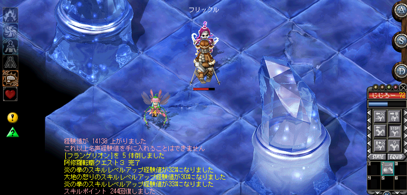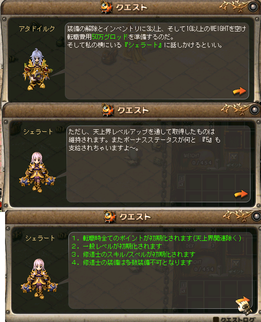 先週、阿修羅実装の為のテストサーバーをネクソンが公開しました。 これは試してこなきゃいかんということで、さっそく色々やってきました。 ネタバレ注意ですのでご注意ください。 なお、6/28現在のテストサーバーにおけるデータですので、そこんとこもご了承を。 阿修羅は修道士から転職する事でプレイすることができます。 転職する為のNPCは、サラセン神殿の上のほうに居ます。 二人いるNPCのうち、右側の男性に話しかけることで詳細を知ることができます。 転職の条件は 1.修道士である事 2.キャラクターレベル80以上 3.名声レベル20以上 まず上記3条件を全て満たす必要があります。それを前提に ・ドリルアーム ・カルマナックル ・フックナックル この3種類のナックルをNPCへ献上。 このとき説明がありますが、修道士の上級職という考えは捨てたほうがいいです。 こんな感じで転職に関する説明があります。 上級職というだけあって、初期ボーナスがある模様。 さて、ここから正念場。最後に[フランゲリオン]を5匹倒せ!という指令があります。 ということで氷の城へGO! ちなみに、バグでしょうが色だけ違うモンスター(メザリンとか)は色がころころと変わります。 [フランゲリオン]を倒す為にビルシャへ。 ちなみに、MCの[フランゲリオン]ではカウントされない様子なので注意が必要です。 それにしても、氷の城でここまでしんどく感じたのは久しぶりだ・・・。 というわけでクエストはこれで終了。ちゃんとクエストが完了した旨のメッセージが出るため安心。 そして阿修羅へ転職!服は上のとおり異国風情が漂うデザイン。 91服もテストサーバーには存在したけど、とりあえずここまでってことで。 さて、皆も気になるであろう、修道士と装備の共有使用できるかですが 頭:不可。専用の帽子あり。だけど・・・しょぼい・・・。 ただディジェレイドや天上帽子は装備できそうな為影響はなさそう。 耳:戦耳は装備可。 武器:不可。ナックルは装備できない。 盾:ショルダーブロックは装備可。 腕輪:装備可。これはありがたい。 足輪:装備可。ただし、金靴が装備できるかは不明。 阿修羅の武器はこんな感じ これだけだと新鮮味はないのですが・・・ なんと二刀流にする事が可能なのです! 二刀流にするとDAMの関係でかなり火力が変わってくる為、 ショルダーブロックを装備して防御力を固めるより とにかく攻撃力特化にして破壊破壊のデストロイ!な感じにしたほうがよさそうです。 実際どれだけ破壊力があるのか、85レベルまであげて火山2に行って見ました。 ちょwww これ、51レベルで覚えられるフォローインデイルというスキルなんですが、 とにかく凄まじい威力。この8,000ってダメ。実はノンクリの威力なんです! これは・・・ということで、ディグ最下のアイツを殴りに行って見ました。 ステータスはこんな感じ。 ボーナス込みCON25振り(素CON28)の残り全DEXで、装備もエンチャでDEX装備に。 テストの時に限って、足輪とかにDEXとかつくんですよね。 指輪にいたってはELv5のSTR3 DEX2付与とか出来て泣いた。 そんなことより!さっそくアイツを見つけて殴ってみると・・・ どしぇええええええええ なんて攻撃力なんだ! 85レベルですよ!51スキルですよ!装備しょぼしょぼですよ!!!!111 防御面にはかなりの不安が残る。 ソウルコンバージョンがあってこの被ダメなので、実際は350ぐらいか。 PT職の色合いがかなり濃そうな感じではあるが・・・ なんのトラブルもなく、あっさり撃退・・・。恐ろしい攻撃力です。 このままで本鯖へ実装されたら、間違いなく阿修羅まみれになりますなぁ。 スキルレベルを上げなきゃいけない関係で覚えられなかったけど。 範囲攻撃が非常に多い。居合い+セイバーみたいな射程のものまである。 このフォローインデイルだってこの攻撃力で前面2方向への範囲攻撃なんだから。 ざっとプレイした見た感じ ・攻撃力はハンパなく、攻撃範囲も広い。 ・遠距離攻撃はない ・防御力は近接・遠距離共に低く、鞭賊並かそれ以下。 ・修道士ほど補助は多くないし、しょぼい。 ・職業ボーナスは素CON7ごとにAC-1(MCは下がらない) ・HITが低いがDAMはなかなか高い ・武器威力はスタッフと同レベルと極めて低く、リベの媒体としては使えない。 ・INTやWISが必要となることはまずない ・装備類は軽め 装備がよければ極STRでもよさそうだけど 防御力が低く、HIT補正もない為CONをある程度振って、DEXも大目のほうがよさげな感じ。 とはいえ、スキル自体はSTR値の依存度がかなり高そうなので ステ振りによってかなりキャラの特性が変わってきそうなところは修と同じ。 課金装甲やADD/MDDダウン等も欲しいところ。 自己補助面が本鯖で充実してくれば変わってくるかもしれないけど。 修道士の新しいカタチ、阿修羅。 とにかくバッタバッタとねじ伏せていく爽快感を味わえる職になりそうです。 おまけ エンチャントの表示も変わる可能性がある。分かりやすくなった・・・かな? PR