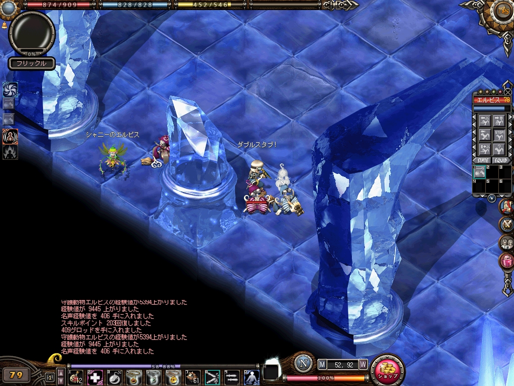 リアルで周りにインフルエンザ感染者が日に日に増えてきました。 会社の人は皆同じタイプの予防接種をしているはずなので・・・アテが外れたってわけか! そのうち私も倒れる日が来るんだと思います。その日になったら皆さま、さようなら・・・。 こんな田舎鯖出身者にもかかわらず、よく見知らぬ人から声をかけられます。 私は知らないのに相手は知っていると言うのはなんだが不思議なもんです。 あれ、もしかして同じ移民でかつての知り合い・・・?とか何とか30分ぐらい考えたりも・・・するとかしないとか。 さて、賊の稼働率が上がっている今日この頃、吟で新しいギルドに入れてもらいました。 そうですブロガーです。 乗せて欲しいと言うなら喜んでドウゾーってな感じで・・・ どうぞよろしくお願いします! シャイでナイ~ヴなのでどこでも引きずり回してやってください! 静かなときは寝てるかメシ喰ってるか・・・やることなくて賊ぼっちしてますので・・・。 おうおう、こんなカス吟、もらってくれるならどうぞ引き取ってくれえええ! いやぁ、それにしてもスオミが溜まり場のギルドって実は初めてなんですよねー。 何だか周りの青がとっても新鮮に感じます。 さてさて、ついに賊も91になりました。 天上に行かねば! 今回はその途上のお話・・・。 おなじみのファングライダーです。 ちょっと前に仕様に若干変更があり 時間差で8方向を2回攻撃できるスキルとなりました。 この時間差というのが結構ミソなのだ。 これがかなりキモチイイ~のよ! 皆が声をかけてくれるシャニーというのは表の顔・・・らしい。 すでにここから絶望は始まっていた あーあー、言っちゃいましたね・・・。 3,4発殴られただけで死ねる子にとってこの数は脅威・・・・のはずが ファングライダーは発動した場所から攻撃対象タイルがキャラクターについて移動しない! だから大軍を引き連れてファングライダーを発動すれば、後から追いかけてくる連中はグチャグチャというわけだ! おまけに時間差になったことで、多くの対象にヒットするようになった! 気持ちよすぎる! 無傷でこの大軍を始末することだって可能なのだ! ところが、それはPSがあればの話。 カス賊では結局こうなって・・・ ちょっとでもラグればあぼーん。 だがそこに痺れる! 悪役になりきれないカスはご立腹の模様 中途半端にマナ棒を消費して帰ってくるものだから諦めが付かない! 死ぬ!補給!死ぬ! ・・・終わらぬ悪夢は今日も続く・・・・。