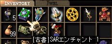 わくわく感を持って目を通していただいているかもしれません。 これから突然ではありますが謝罪会見を開かせていただきます。 正直すまんかった! 誰宛かというと、昨日討伐で一緒になった人たち。。 先週が特別だったのだとは露知らず、ファングラインダー使ってすいませんでした! いやぁ、2箇所当たってるけどいいんだっけなぁ・・・と思ってはいたんですが(´・ω・`) あの場でごめんなさいと言えなかったのでこの場を借りて陳謝いたします。。 悪さをした天罰が下ったのか、古書がこんなものに。 SARエンチャントって何に使うんだろう?