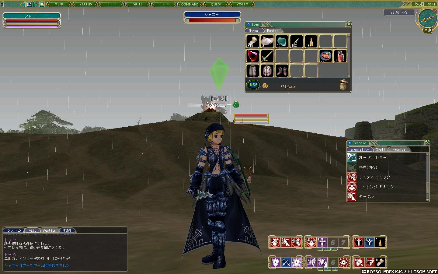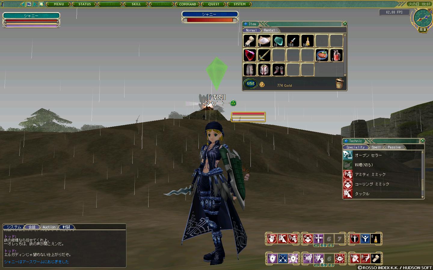 それでもやっているのは盗賊っぽい感じでした。盗みはまだ挙げてないが! このゲームはアスと違って最初に職業を決めるわけじゃなくて 育てたスキルによってシップと呼ばれる職業みたいなもんが変わっていくのだ 現在はランサー・・・ダガーが槍と同系列なのだ。 ランサー ⇒ ジャベリンナイト ⇒ ドラゴンスレイヤー 見たいに1次シップ、2次シップ、3次シップまでシップは変化していく。 ますますダガーというよりまさに槍ですな。 でも見た目は盗賊っぽいでしょ! これ実はユーザー参加のデザインコンテストの作品なんだよね。 MoEにはこういうデザコン装備も結構ある感じ。 スキルも色々種類があるのよねえ バランスのいい刀剣、手数と機動力の槍、一発のデカイ棍棒、 格闘家を目指すなら素手とキックもどうぞ。 遠距離物理の弓や銃もあるぜ! 魔法はおなじみの破壊魔法に召還魔法や回復魔法、そして神秘魔法やら強化魔法、死の魔法なんてものまである。 生産は料理を始め醸造や鍛治、裁縫などなど・・・。 このゲーム、マビと違って生産によるユーザー取引がゲームを支えているのだ。 創れば作るほど赤字・・・いやいや、生産者がいなきゃ戦えない。 日々の飲食はもちろん、武器も防具も消耗品なので 生産者がいなければ戦闘キャラが成り立たないようになっているのだ。 どれも味のあるものばかりでスキル上限値850の中でどれを育てようか1日迷える。 結構古いゲームだけど、活気はアスはもちろん、一昔前のマビさえ凌ぐんじゃないかと思う。 何と言っても運営のやる気が違う。 月1のイベントではGMも必ず参加しているみたいだし。 なんというか、ゲームに対するGMの愛情を感じる。ネクソンゲーから転向すると特に。。 ま、こんな感じの近況報告 E鯖でふらふら音楽やら魔法やら撃ちながらムトゥーム地下2階をほっつき歩いてる Shany P鯖で盾があるのにガブガブ噛まれている槍使い シャニー この連中は私のキャラクターです。 どうぞよろしく PR