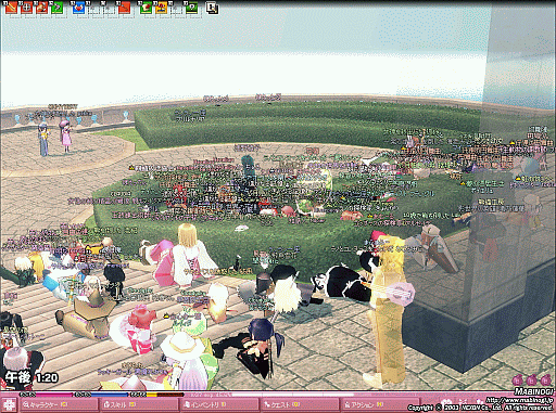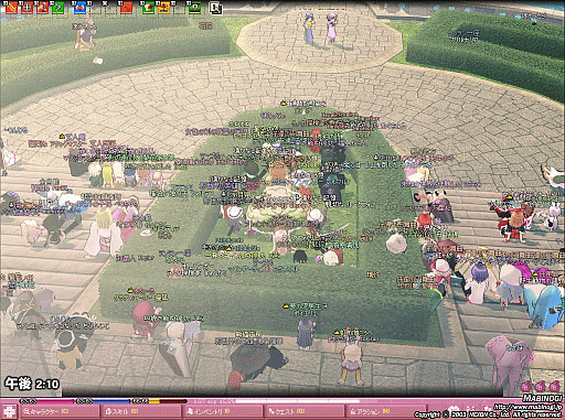 アスガルドの中での“常識”がまるで頭から離れず、それが戦闘の中で 不要なスキを生んでいるのは間違いありません。 実際、PTを組んでも何をする事が一番貢献できるのか模索するばかり。 知識、PS、学ぶ事が多すぎて、初心者ってこんなハラハラするものなんだなと実感。 とにかく経験するしかないと、誘われればどこにだって行く勢いで体で覚える毎日。 まあ・・・wikiを見てもなかなか頭に入らないので、やられながら覚えるしかないんですよね。 カルチャーショックはそれだけじゃない。とにかく衣装が多い多い。 特有の職業が無いためか、その着こなしは千差万別。 というわけで、賊の51服を再現してみました。 後でアスにインした時にオリジナルを見てみると、ズボンが大分長かったけど、 そこまで長いズボンがなかったからとりあえずこれで。 雰囲気は出てると思・・・う。 さすがに71服は再現できそうにないけど、いつかきっと作るぞ71 これはたまたま手に入れた服とか鎧。 どう、上のキャラと同じに見えます? アスガルドと違って服装による防御力の差はほとんどないので、 服や靴、帽子やグローブなど様々に演出できるところがいいですね。 さて、他のカルチャーショックといえば、マビノギって 『ファンタジーの故郷である北ヨーロッパで、古くから吟遊詩人たちの間に伝承された歌を意味する言葉』 という公式HPにおける説明を象徴するように、演奏会があるんですよね。 しかもこれ、運営によるイベントではなく、完全なユーザー有志によるイベントなんです。 マビノギにはMMLという作曲用マクロプログラムが導入されており、 ある程度の個人知識があれば誰でも作曲して演奏する事ができるらしい。 いつかはぼくも言語を覚えて作曲してみようと思いますが、今はまだちょっと・・・。 やっぱやるなら腰をすえてやりたいですしね。 さて、少々話題が逸れましたが演奏会です。 ユーザーイベントであるにもかかわらず、その規模はまさにサーバー級というべきなのでしょうか。 2時間ぐらい、色々な人が楽曲を持ち合って、時には観衆に共演を求めたり。 凝ってる人はホント凝ってたりしてとっても楽しい時間でした。 いつかぼくもここに立てるといいナ。