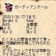 粉末ソースまでぶち込んだ\(^o^)/ 結局ふやかしてフライパンで炒めると言う荒業に・・・。 所要時間10分・・・通常の3倍の作成時間を要すカップ焼そばだと・・・。 まーそんなぬるい話は置いといて、とうとう見つけたんですよ、ファントム! イヤー長かった。 しかも露店で超低価格・・・ってあれ・・・? ファントム・・・ジャベリン・・・。 ホンキでファントムグラインドと見間違えた。 末期だ。゚(゚ `Д)ノ。゚ヽ( )ノ゚。ヽ(Д´ ゚)ノ゚。。゚ヽ(゚`Д´゚)ノ゚。ウワァァァン!! て、おいおい、これもまたぬるすぎる話じゃないか。 今度こそ本気出す。 ぼくも一攫千金を狙ってガーディアンチャージ買ってみた。 ・・・ボトルにたどり着くまでに20分を要した でも課金アイテムとボトルをNPCに持っていくだけでおkなんて楽チンだね。 みんながぼんぼんつぎ込む理由もなんとなく分かる気がします。 こーいうところだけは頭が回るんだからネクソンちゃんは☆ で、クエスト(?)を終らせると以下の二つのアイテムをゲット。 ガーディアンZがクエスト内容としては主役のはずなのだが・・・ アイテムをもらえる人形のほうがどう見てもメイン。 まるでビックリマンチョコにおけるカードとチョコの関係だ。 でも、ガーディアンZは結構重宝する。 デルクレビスではなぜか守護が貧血を起こしやすいためだ。 さーて、5個人形を手に入れて何がもらえるかなーっと! ・・・もう、いい・・・よ・・・ 今日のカス言 意味:日本語はワビサビ
