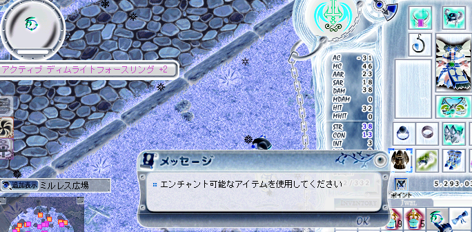 先週の討伐で運使い切った感じだし。 破滅の古書、霊魂の古書、ディジェシューズ、懺悔の涙。 これだけ出たらさすがにもう来ないよな。ごちそう様でした。 でも、やっぱやっぱファントムグラインドは賊をやってる人なら要らないって人は少ないんじゃないかな。 まあ・・・鞭一本でここまで来ていきなりダガーに転向っていうのも薄情な気もするが・・・。 と、いうことでデルクでしばらくシャドー系を選別して自力で出したろうやないかーい。 わらわらとシャドー系だけ釣って、隅っこで守護を壁にタイマンタイマン。 でも・・・なんかウェルリックからは出ないような気が・・・してきたんだ。 んじゃまーボスからいっちょ出したるかやーと言うことでボス選別PT 右下のでかいヤツ(みんなデカいけど)がボスのDIOード様です。 スローが無いと攻撃速度がハンパなくて常にSP0です。マナ棒がもちません。 こいつはどうもスキルを色々出すようなんだけどなぁ。 いかせんドロップ率が低くて・・・やっぱファントムグラインドは技名どおり幻のスキルのようです。 その代わりに出たものといえば・・・ 指輪が出ました。なにやらだらだらと長い名前ですが、要はOP付与つきの指輪です。だが・・・ ゴミ決定・・・ 今日のカス言 意味:プラス思考は大事
