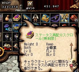今回、課金アイテムのステータス再配分スクロール(無制限)を購入してステータス再配分を行いましたが