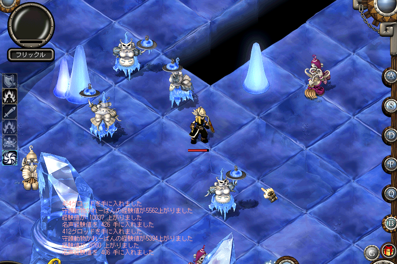 どこまで調整が入るか分かりませんが、預言者の二の舞にならないことを祈るのみ。 本鯖ではいつもどおり戦士のレベルあげー。 やっぱ戦士ってつおいね。さくさく狩れるとキモチいい! こーんな感じで沸いてたら、賊だったらさっさと逃げちゃいます。 逃げ足の速さだけなら賊は誰にだって負けないが・・・今は戦士。 奴の後ろに立つな。命が惜しいならば。という某ヒットマンの台詞を思い出し・・・。突貫! あっという間に撃退。戦士はやっぱつおいね! というより、支援守護のおかげと言うべきなのか・・・。と思ったら ノーン。 なんてこったい!ここまで来て貧血を起こすなんて! まるでドライブに出てある程度まで走ってから家の鍵を閉め忘れた事に気付いた感じだぜ。 それでもしばらくは粘ってから撤収。 今日の戦利品。やったぜばあちゃん!念願のドリルアームを手に入れたぞ! これで阿修羅が来ても転職する為の準備は整った! あとはテストが無事に終るのを待つのみ。 にしても・・・預言者のアイテムはボロボロ出る。人口と反比例するかのように・・・。なんかかわいそ。 PR